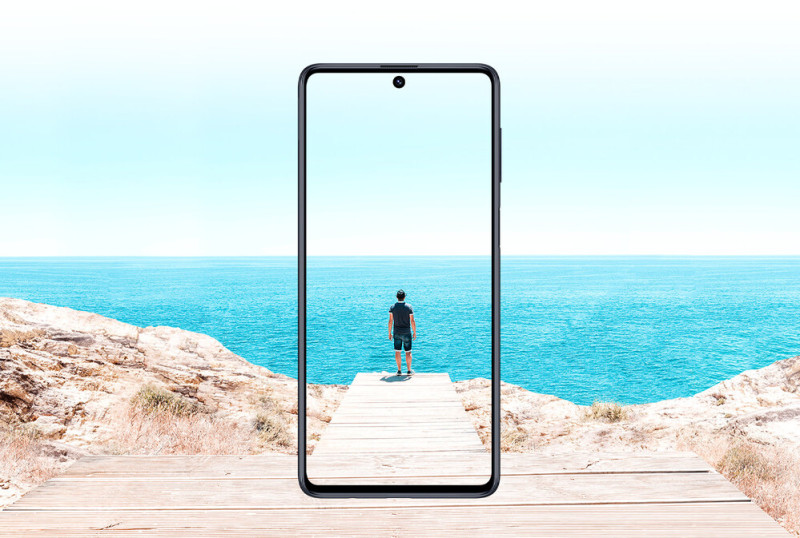 Ahhoz képest, hogy a közel kétéves Samsung Galaxy M51 7000 mAh-n nagyobb táblagéphez méltó akkumulátort kapott, 213 grammon még csak nem is döbbenetesen combos masina. Az előlapon például alig veszi körbe káva a 6,7"-es FHD+ Super AMOLED panelt, így azzal sem lehet megvádolni, hogy a készülék nem fér a zsebbe vagy a tenyérbe.