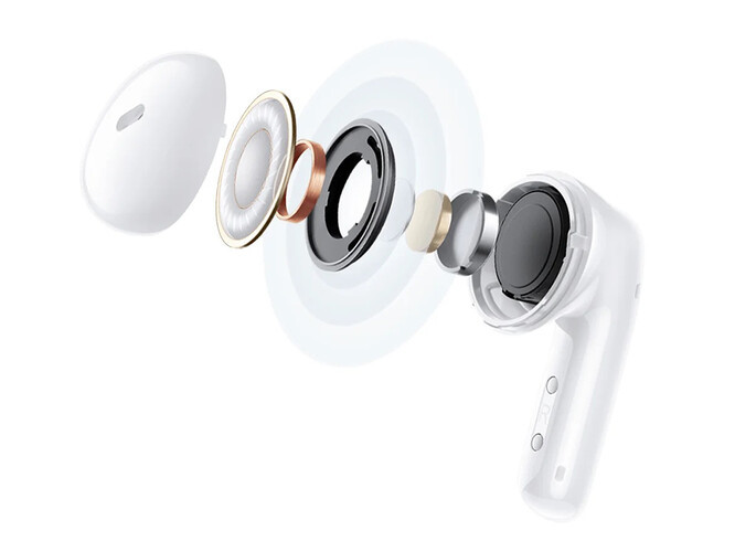 A tok 49 x 48,6 x 23 milliméter és 36 gramm, a fülesek darabja mindössze 4 grammot nyom, méretük pedig 32 x 17,8 x 18,5 milliméter. Fekete, fehér, kék és rózsaszín opciók vannak, az átlátszó fedéllel szerelt tok passzol színben a füleshez. A Buds 6 Active egyhuzamban 6 órás, tokkal együtt összesen 30 órás lejátszási üzemidőt ígér, a fülesekben 37 mAh-s, a tokban 475 mAh-s telep található, tölteni a tokot USB-C kábellel lehet. A fülhallgató IPX4-es védelmet élvez, az oldalán látható csík mögött pedig érintőfelület rejtőzik, amin keresztül irányítható.