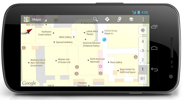 A Google Play online piactéren már elérhető a Google Maps legújabb változata, mely immáron a múzeumokon belüli tájokozást is segíti, bár ezen szolgáltatás egyelőre erősen korlátos. A szintenkénti beltéri alaprajzok eléréséhez elegendő az épületeken tovább nagyítani, majd a pillanatnyi tartózkodási hely engedélyezésével épületeken belüli keresésekre is lehetőség nyílik. A térképszoftver egyelőre csak néhány amerikai múzeumban (de Young Museum – San Francisco, Philadelphia Museum of Art, Cincinnati Museum Center, Indianapolis Museum of Art, American Museum of Natural History – New York / Manhattan, 17 Smithsonian Museum – Washington) használható, de a lista a jövőben várhatóan gyorsan bővülhet. A Google és a Nokia tervei szerint a beltéri navigáció idővel a metró átszállásokban, nagyobb plázák és bevásárlóközpontok felfedezésében, illetve a nagyobb múzeumok kínálatának megtekintésében is sokat segíthet, de a folyamatosan változó tárlatok miatt ehhez egyszerű adatbázis karbantartás is szükséges.