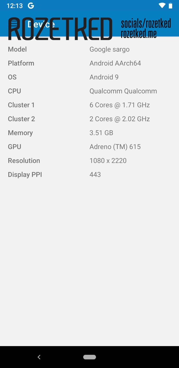 A Geekbenchen Sargo kódnéven futott az eszköz, és az Aida64 is látta, így a specifikációról is van némi fogalmunk. A Google marad az egykamerás szettnél, ami a hátlapi esetében 12, míg elöl 8 megapixel lehet. Hardveresen a Lite modell a Snapdragon 670-re épül 4 GB rendszermemóriával és 32 GB belső tárhellyel, a megjelenítő 5,56 hüvelykes, 2220 x 1080 pixel felbontású IPS panel lesz, az akkumulátor pedig 2915 mAh. A készülék tulajdonképpen úgy néz ki, mint egy Pixel 2 magasabb kijelzővel és jack csatlakozóval.