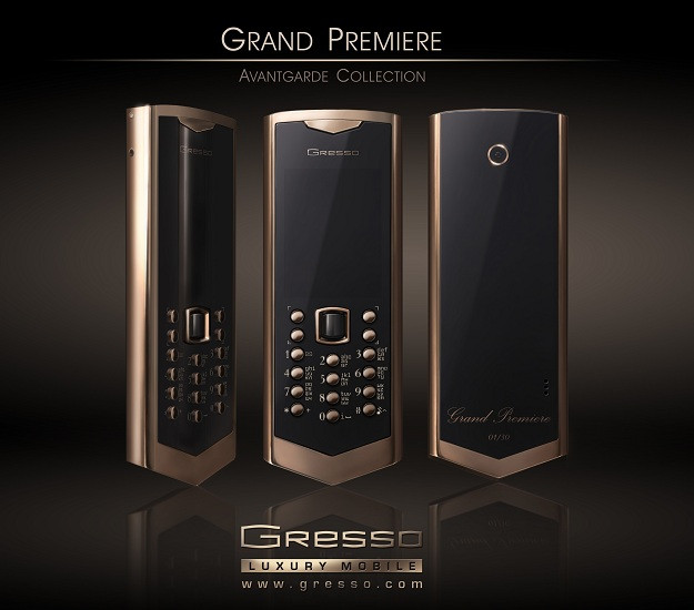 Újabb méregdrága luxusmobillal rukkolt elő a Gresso, mely a Nokia hagyományos telefonokhoz szánt Series 40 platformját csomagolta exkluzív köntösbe. A több mint 150 gramm arany felhasználásával készített Gresso Grand Premiere előlapját és hátlapját 138,5 karátnyi, vagyis nagyjából 27,7 gramm természetes zafírkristályból csiszolt üveg védi. Ezek után valószínűleg nem meglepő, hogy a mindössze 30 példányban piacra kerülő készülék ára 50 000 dollár, azaz nagyjából 11,8 millió forint körül alakul. A napokon belül elérhető 121x46x12 milliméteres és 190 grammos Gresso Grand Premiere pontos műszaki leírása egyelőre nem ismert.