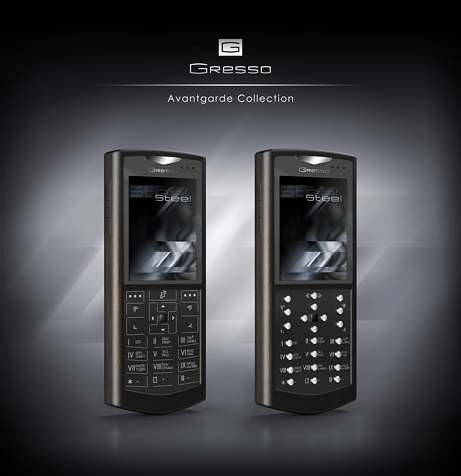 A Gresso név sokak számára ismerősen csenghet, hiszen oldalunkon is bemutattuk már az aranyból, ébenfából és fekete gyémántokból építkező kollekcióit. A gyártó legújabb készülékei Sol Steel és Luna Steel (Nap és Hold fémek) nemesfémek helyett a repülőgépgyártásban használatos fémberakásokat kaptak. Mindkét modell megőrizte a gyártó szokásos stílusjegyeit. A lézerrel gravírozott titán borítású billentyűzet felirata továbbra is római számokból áll, és a 65 ezer színű 240x320 képpontos kijelzőt is 42 karátnyi zafírüveg óvja. A Gresso modellek további különlegessége, hogy a hátlapot csavarok helyett erős mágnesek rögzítik, így egyrészt biztosabb a tartás, másrészt egyszerűbb a szétszedése is. A készülék teste több, mint 200 éves afrikai ébenfából készült. A Sol Steel gombainak titán bevonata alatti része ugyanúgy a repülőgépiparban használatos fémből készült, mint a hangszóró feletti háromszög alakú embléma, vagy a hátlapon látható Gresso logó. A Luna Steel billentyűzete lapos kivitelű, de a másik modellel azonos berakások díszitik az elő és hátlapját egyaránt. A 2 megapixeles kamerával felszerelt 119,5x48x14 milliméteres Windows Mobile 6 Standard alapú okostelefonok 3.500 eurós, azaz mintegy 900.000 forintos áron kaphatóak.