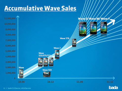 Az igazsághoz persze hozzátartozik, hogy a bada készülékek ára eleve nem lehetett túlságosan alacsony, hiszen az operációs rendszer és a fejlesztőkészlet karbantartása mellett a fejlesztők megnyerése és támogatása is rengeteg pénzt emésztett fel, míg az Android-alapú megoldások esetén ilyen költségekkel nem kell számolni. A forgalom drasztikus visszaesését jól jelzi, hogy a Samsung tervei szerint a Wave modellek teljes forgalma – a tavalyi 5 milliós eladásokkal együtt – talán október végén vagy november elején lépik át a 10 milliós álomhatárt, melyet követően jövőre a bada operációs rendszer más gyártók számára is megnyitásra kerül.