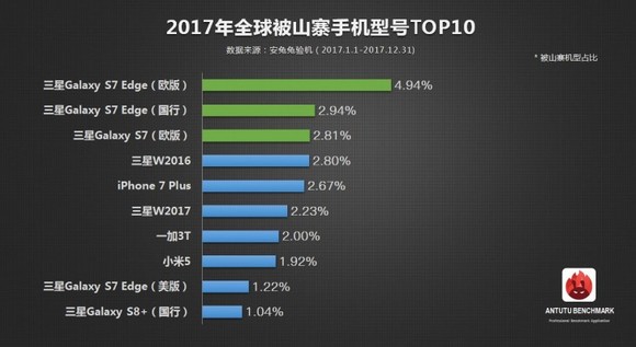 Az AnTuTu készített egy összesítést a legnagyobb számban másolt készülékekről, amely ez esetben nem egyes tulajdonságok, vagy formai elemek átvételét jelenti, hanem egy az egyben a készülék replikáját eredetiként beállítva. Ezek az eszközök általában megtévesztésig hasonlítanak a valódi modellekre, noha a hamis iPhone-ok esetében előfordul, hogy konkrétan Android fut rajtuk. Jobb esetben valami iOS-ra emlékeztető témával. Az AnTuTu adatai szerint az adatbázisában elérhető teljesítmény teszt eredmények 2,64%-a hamisított eszközöktől származik, amelyek a legnagyobb arányban a Samsung csúcsmodelljeit próbálják imitálni.