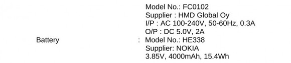 A kapacitással kapcsolatos szám már csak azért is erős, mert a Nokia 8, az eddigi csúcsmodell is csak 3090 mAh-t tudhat magáénak, a Nokia 3 pedig mindösszesen 2630 mAh-t. A tanúsítvány megjelöli a töltőadapter szabványát is, teljesen sima, 5 voltos, 2 amperes fejre számíthatunk, gyorstöltésre ne számítsunk, a két drágább Nokia, a 3-as és az 5-ös sem tud ilyet.