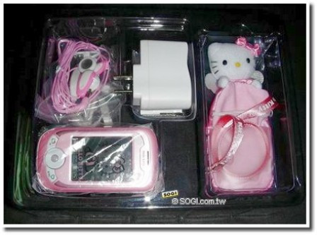 Volt már dolgom néhány telefonnal, azonban a Hello Kitty mobilja még nekem is sok. A készülék egyébként érdekes tulajdonságokkal bír, csak a külseje ne lenne. Természetesen Japánban vásárolható meg a készülék, amelyben már az is meglepő, hogy érintőképernyős, bővíthető memóriával és 1,3 megapixeles kamerával rendelkezik. A nevéből adódóan mindenféle Kitty tartalommal ellátták, kezdve a hátterekkel, folytatva a csengőhangokon át, egészen a menü ikonjaiig. A legviccesebb azonban a telefon oldalán elhelyezett ledsor, amivel üzeneteket írhatunk a levegőbe, amennyiben gyorsan mozgatjuk a kezünket. Egy Tokio Hotel koncerten tök jól jöhet.