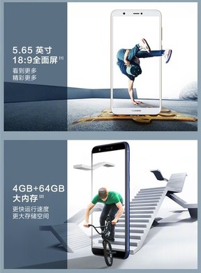 Dupla hátlapi kamerarendszer, Android Oreóra épülő EMUI 8.0, 5,65 hüvelykes Full HD+ (1080 x 2160 pixeles) megjelenítő, hátlapi ujjlenyomat-olvasó, nyolcmagos processzor és Mali-T830 MP2 grafikai egység jellemzi. Felszereltségtől függően 3/32, illetve 4/64 GB-os memóriapárossal.