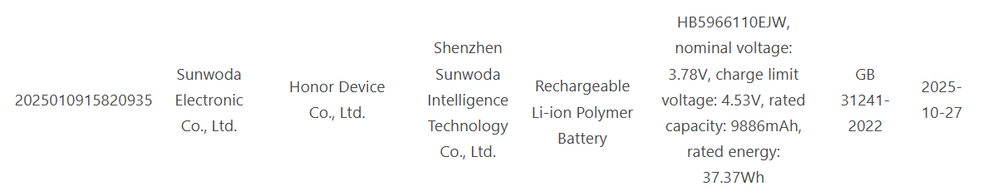 A Honor Power áprilisban 8000 mAh-s telepet pakolt 209 grammon kezes házába, ám Ázsiában maradt, a Power 2 pedig 10 000 mAh-val készül. Ez többé nem csak pletyka: a 9 886 mAh-s telepméret, amit 10 000 mAh-s tipikus értékkel reklámozhatnak, a kínai 3C ügynökségnél járt hivatalos viziten, 37,37 Wh-val. Digital Chat Station szerint egyébként nem is egy, hanem három óriástelepes Honor készül: egy Snapdragon 7s Gen 4, egy Snapdragon 7 Gen 4 és egy Dimensity 8500 chippel. Az első valamikor 2026 elején érkezhet, 6,79"-es LTPS OLED panellel.
