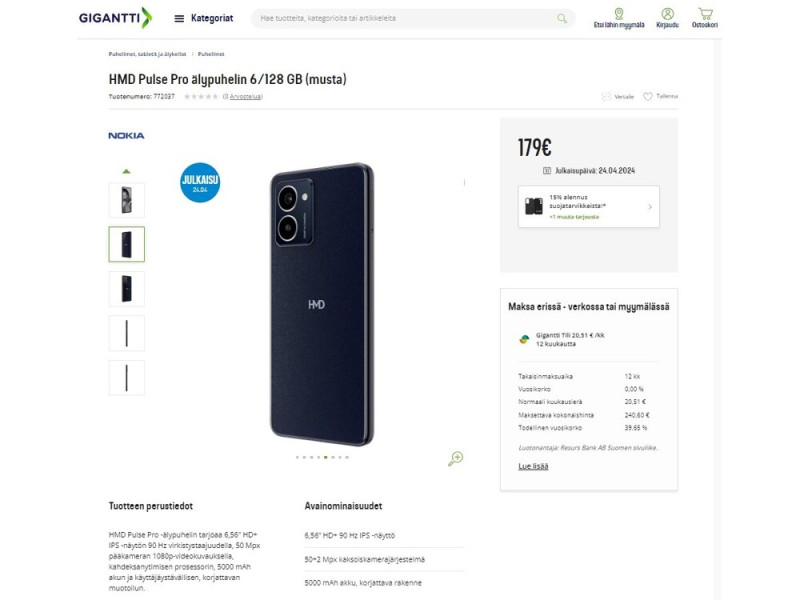 Megerősítette az eddigi értesüléseket a finn Gigantti melléfogása, amelynek eredményeképpen nem csak a HMD Pulse Pro teljes specifikációja és ára került fel a honlapjukra, de a készülék hivatalos bemutatásának dátuma is, ami elvileg holnap esedékes. A HMD első saját brand alatt érkező készülékét 179 euróért kínálja majd a finn viszonteladó, ami 66 ezer forintra jön ki átszámolva.