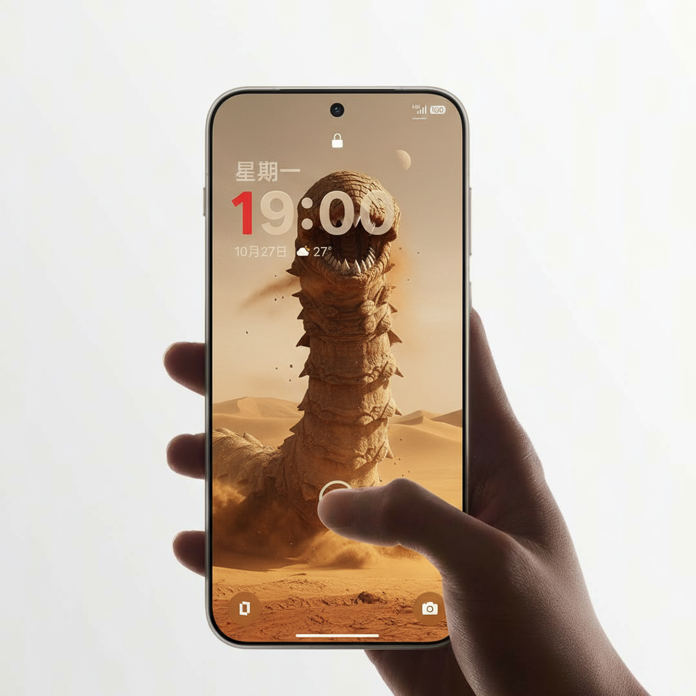 És akkor a telefon homokféreg háttérképpel a Perplexity jóvoltából: