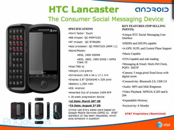 It's again AT&T's merit that HTC's latest Android slider has been revealed. Based on its specs sheet it made quite a so-so impression. The handset, expected in August, features a full QWERTY keyboard, a size of 109 x 54 x 17.1 mm, a weight of 110 grams, HSDPA and HSUPA support, a 3 megapixel camera with fixed focus, stereo Bluetooth, GPS and a 1,320 mAh battery. This would all be okay, but the 2.8" touchscreen display with a resolution of only 240 x 320 pixels seems to be very poor for Android, of course they could make it appropriate with a unique user interface.