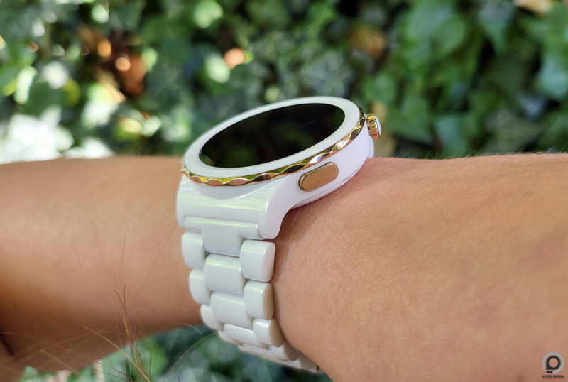 A kisebb, női modell viszont nem csak a tervezőasztalnál jelentett kihívást az illetékes részlegnek, de az anyagmegmunkálás és a gyárástechnológia sem hétköznapi, a kerámiával ugyanis nagyon nem egyszerű dolgozni, a Watch GT 3 Pro Ceramicnak pedig nem csak a tokozása, de opcionálisan a szíja is kerámia. Ez mindenképpen fényűző esztétikai összhatást kelt, de legalább olyan komplikált és kényes folyamat az elkészítése, mint amilyen mutatós a végeredmény.