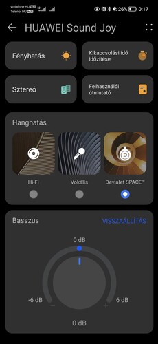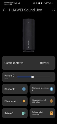 Hangerőből tényleg nincs hiány, hasonló teljesítményből aligha hoznak ki több erőt a konkurensek, a kütyü méretét ismerve pedig tényleg meglepő, mit produkál a Huawei Joy, viszont a három előre összerakott hanghatásból (Hi-Fi, Vokális, Devialet Space) leginkább a vokális az, ami tényleg feltűnően kiemeli az énekhangokat, a másik kettő közt viszonylag apró a különbség, és azért Hi-Fi élmény helyett nyilván inkább a partiképességek domborítanak, bárhova is állítjuk a hangszóró beállításait. A kodektámogatás AAC és SBC szinten kimerül. Adott a telefonálási lehetőség is elég jó minőségben, zavaró visszhangok nélkül.
