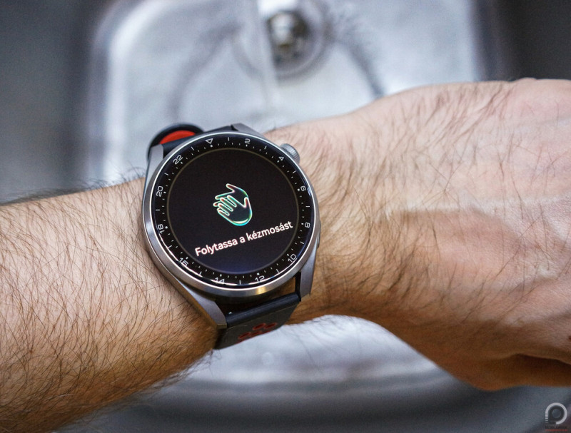 Ügyes trükk a kézmosási segítség – no nem végzi el helyettünk a dolgot az óra, viszont pár másodperc alatt felismeri a tevékenységet, és hanggal, illetve animációval jelzi, meddig illene folytatni a dolgot minden kórokozó kiiktatására, ami nagyjából 30 másodpercet igényel. Elsőre néha kellemetlen volt a puttyogó hang, aztán rájöttem: ha bármi okból kézmosásra vetemedem, akkor célszerű alaposan elvégezni – a Watch 3 pedig jelez, ha idő előtt megkísérlem feladni a dolgot.
