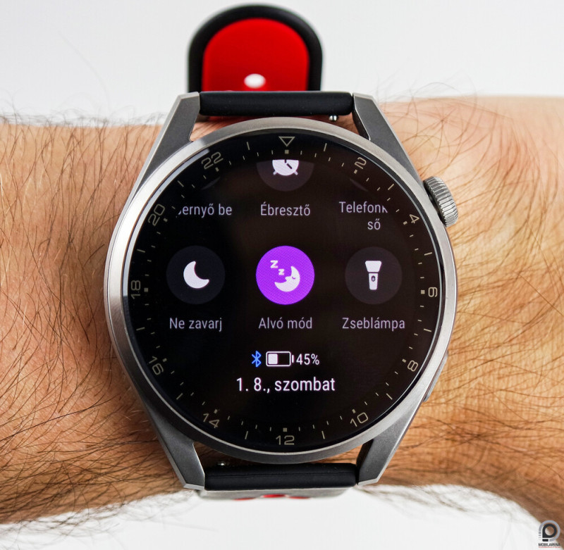 Míg nappal az aktivitás, este a pihenés az egészségmegóvás sarokköve, és immár kétféle módot kínál az óra a jelzések és értesítések némítására. A ne zavarj! amolyan színházmód lett: nincs hangjelzés vagy felvillanó kijelző, ha a kézzel bekapcsolt vagy időzített mód aktív, ám csuklóemelésre felvillan a szokásos, nappali óralap. Ezzel szemben az alvó mód emelésre szemkímélő, halovány órát villant csak fel – a hangok és a rezgések a mód kikapcsolásáig ugyanúgy elmaradnak.