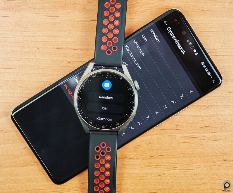 Ahhoz képest, hogy a Huawei óraszéria mennyi mindent tudott, a Watch 3 csak nemrégiben kapta meg az SMS és Messenger üzenetekre való válaszadás lehetőségét. Persze az aprócska, de használható virtuális billentyűzet eddig is megvolt, elvégre az óra önállóan is működik, és szükség lehetett a WiFi jelszó beírására, vagy keresőszó bepötyögésére az AppGalleryben.