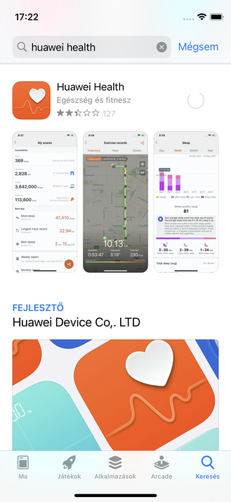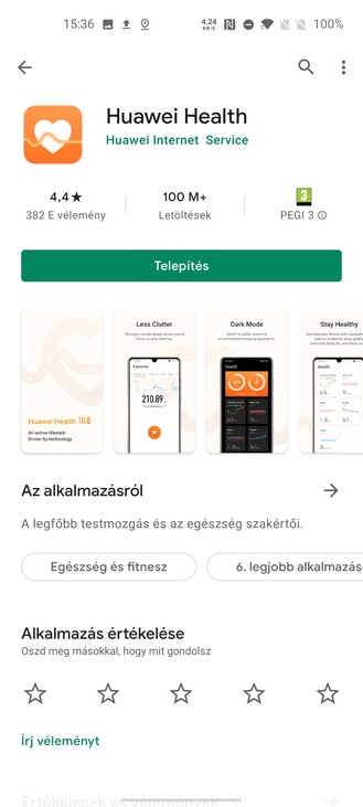 Ha az órát feltöltöttük és bekapcsoltuk, válasszuk ki rajta a rendszernyelvet, aztán jöhet a mobil nyomogatása. Huawei márkájúval a legegyszerűbb beköltözni, mert előre telepítve van az Egészség, és eséllyel be is jelentkeztünk Huawei ID-nkkal, de más márka eszközén is csak annyival bonyolultabb a dolog, hogy ellátogatunk a Play Áruházba, és telepítjük a Huawei Healthet, majd belépünk vagy regisztrálunk.