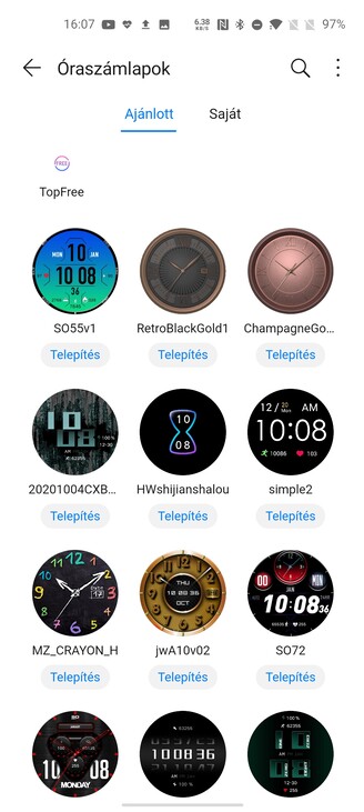 Ha készen vagyunk a beüzemeléssel, máris megjelenik a kütyü főoldala, rajta a napi mozgásadatokkal és a Watch GT 2 Pro esetében kismillió ingyenesen telepíthető óraszámlappal. HMS-es eszközökön vásárolni is lehet óralapot, plusz akad pár óraalkalmazás is – ezek más márka esetében egyelőre nem telepíthetők. Az egészségfelügyelet alatt az alvás, a pulzus, SpO2, stressz és mozgáskövetés opcióit paraméterezhetjük, a zene menüpontban pedig az órán tárolt és kompatibilis hangállományokat mozgathatjuk az órára Bluetoothon, már ha tud ilyesmit Huawei kütyünk.