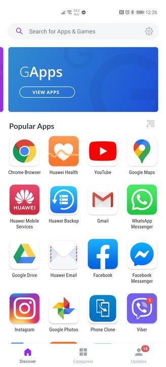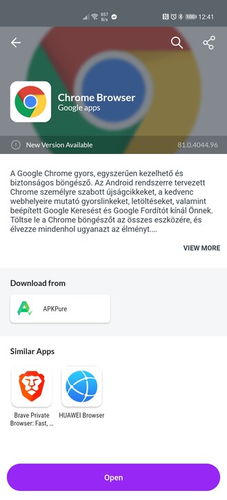 Annál is inkább, mert a villámgyors telepítés és a hazai régió kiválasztása után a MoreApps a főoldalon kapásból rendszerezi a mifelénk populáris alkalmazásokat, és bizony a keresőóriás szolgáltatásai is közéjük tartoznak. Legfelül külön kártya vezet a közösségi média listájára és a Google-gyűjteményre. Amennyiben akad olyan alkalmazás a keresőóriástól, amely elindul HMS-es mobilokon (Térkép, Gboard, Chrome), a MoreApps az APK Pure-t nyitja meg, ahonnan máris telepíthetünk. Ha nem, akkor a Böngészőt ajánlja, webes eléréssel, illetve alul a HMS alternatívákat, elvégre van élet Google nélkül.