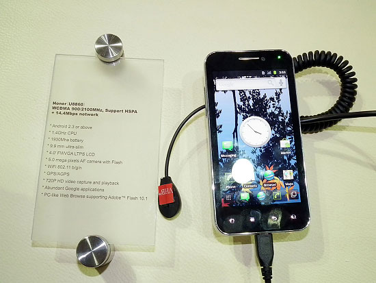 A Huawei korábban már megerősítette, hogy a felsőbb kategóriában is szeretne ringbe szállni a kedvező árú ajánlataival, melyek közül az első igazán erős ajánlat az alant is látható U8860 Honor lehet. Az egyelőre hivatalosan be sem mutatott, Android 2.3.4 Gingerbread alapokon nyugvó készülék az előzetes pletykák szerint 4 hüvelykes, 480x854 képpontos (FWVGA) érintőkijelzőt, 720p felbontású HD anyagok rögzítésére is alkalmas 5 megapixeles kamerát és 1,4 GHz-es processzort kapott. A mindössze 9,9 milliméter vastag készülék Európában és Ázsia bizonyos régióiban lesz elérhető, legalábbis a 900 MHz-es GSM és 2100 MHz-es HSDPA hálózati kompatibilitás erre enged következtetni. A Huawei U8860 Honor piaci premierjének időpontja és várható ára egyelőre nem ismert.