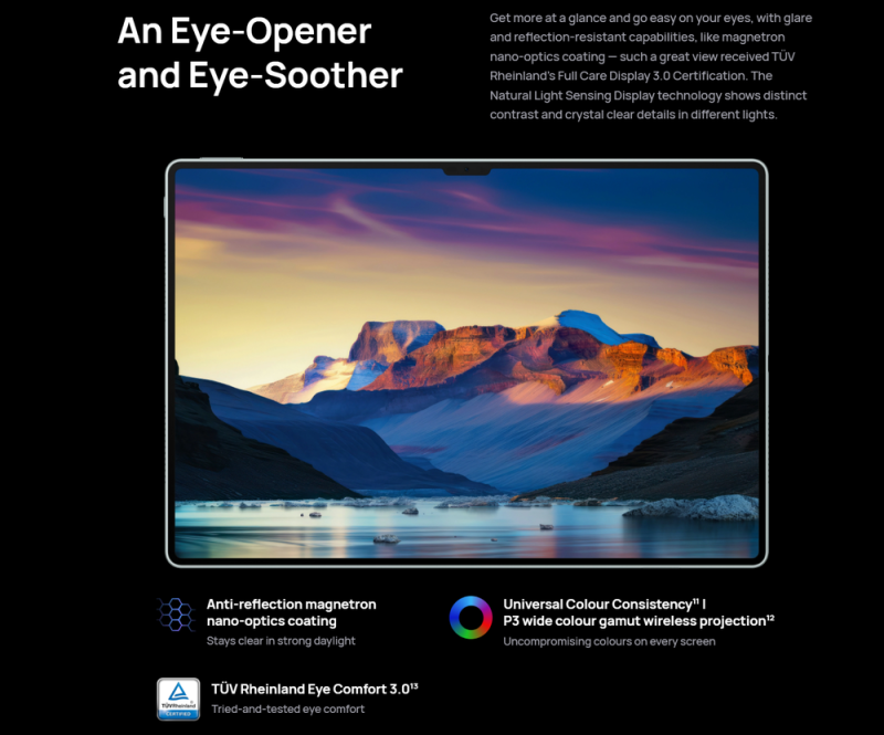 A Huawei Mate 70 széria és a kinyitva mindössze 4,3 milliméter vastag Mate X6 mellett a Huawei csúcstabletjének új generációja is bemutatkozott a MatePad Pro 13.2" formájában, ami értelemszerűen 13,2 hüvelykes, Flexible OLED megjelenítőt kínál 1920 x 2880 pixeles felbontással és 144 Hz-es képfrissítéssel, illetve valamiféle nanotechnológiás, mágneses tükröződésmentes kivitelt, amit a költő Anti-reflection magnetron nano-optics coating-nak nevezett.