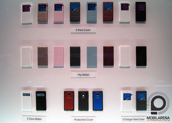 Tartozékokból elég nagy a választék, többféle tokot is lehet kapni, amelyek között ablakos, ablak nélküli és ledes visszajelzéssel rendelkezők is vannak. Érdekes módon a sajtótájékoztatón a Swarovski kristrályos tokok váltották ki a legnagyobb örömöt; ezek összhangban vannak a Gear S órához elérhető speciális karpántokkal. A negyedik generációs Note fehér, fekete, arany és pink színekben lesz elérhető.