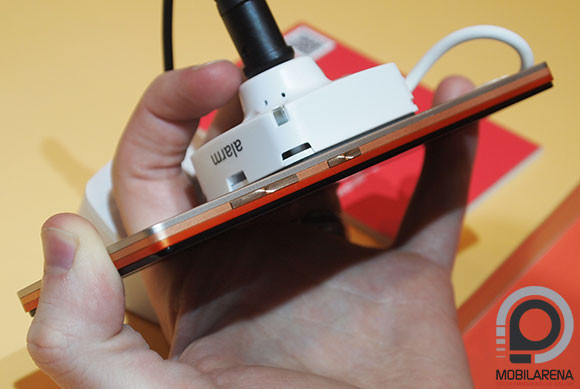 Ennek ellenére a Lenovo azoknak is próbál megoldást találni, akik a 2300 mAh teljesítményű Li-Pol akkumulátor produkciójával nem lennének elégedettek. A telep ugyan nem cserélhető, de kapható lesz két furcsa kiegészítő a telefonhoz, ezek közül az egyik egy olyan, kvázi plusz réteg, amit a hátlapra lehet helyezni és további energiával látja el a készüléket. Kvázi egy külső akksi, csak nem dróttal van összekötve a mobillal, hanem direkt ehhez a telefonhoz tervezték. A másik tartozék egy apró hangfal, amit a JBL-lel közösen hozott tető alá a Lenovo, ezt is a Vibe X2 hátára lehet illeszteni és sátorszerűen a hátlaptól elhajtva a készülék megáll az asztalon és bömbölhet belőle a zene.