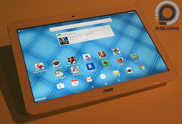 Még egy táblagépet meg lehet csodálni: a kevésbé vad megjelenésű Acer Iconia One 10 egy 1280 x 800 pixeles eszköz, amely, mint neve is sejti, 10,1 hüvelykes képátlót kapott. A tabletet a MediaTek MT8151-es SoC hajtja meg, amely nyolc, 1,7 gigahertzre skálázott processzormagot kapott, emellett 1 gigabájt RAM-ot és kiszereléstől függően 16 vagy 32 gigabájtos belső tárolót. A One 10 nem apró darab: 245 x 172 x 9,2 milliméteres és 510 grammot nyom. A hátlapra 5, az előlapra pedig VGA felbontású kamera került. Mindkét táblagép Android 5.1-gyel a fedélzeten startol majd el az ősz folyamán.