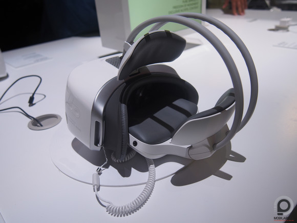 Leginkább azért, mert annál jóval robusztusabb, komolyan szerkentyűnek látszott, kérdezték, hogy kipróbáljuk el, belenéztem (belefért a szemüvegem is), de nem volt forradalmi, azt nyújtotta, amit általában ezek a szerkentyűk tudnak a középkategóriában. Mégis van pár érdekes vetülete a dolognak, egyrészt tényleg nem kell hozzá kábel. A komplett elektronika benne van, a hardver is, a kijelző is, a standon dolgozók szerint olyan erős, mint a Galaxy S7 (de persze konkrét specifikációról csak annyit lehet tudni, hogy nyolcmagos a chipset és 3 GB a RAM mérete) és a kijelzők felbontása is egyenértékű. Ez egyébként két darab, 3,8 inches, Full HD felbontású megjelenítőt takar.