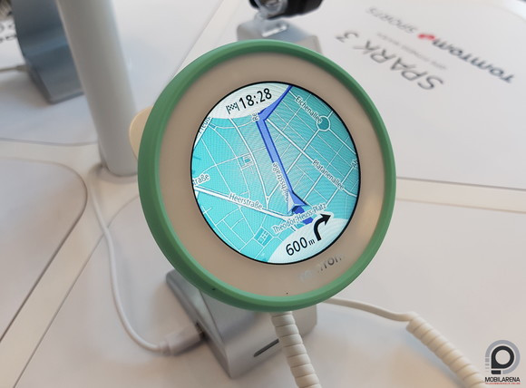 A berlini kiállításon lehetőségünk nyílt megnézni a TomTom legújabb navigációs eszközét, a kimondottan robogókhoz készített Viót. Bár a szerkesztőségben többen is robogózunk, soha korábban nem gondoltunk arra, hogy ehhez a járműtípushoz szükség lenne külön navigációs eszközre, de a holland vállalat most elmondta, hogy miért van. Egyrészt azért, mert a robogókon elég korlátozott hely áll rendelkezésre, a Viónak pont ezért olyan rögzítője van, amelyik könnyedén elfér a visszapillantótükör rúdján, plusz maga az eszköz is elég könnyű (104 gramm) ahhoz, hogy ne húzza le a tükröt. A 88 milliméteres átlójú körre egy 2,4 hüvelykes kijelző fért el.