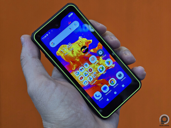A kijelző 4,3 hüvelykes, 540 x 1200 pixellel és felül csepp alakban belógó előlapi kamerával. A PhoneMax kijelzőjének és a készülékházának mérete is kisebb, mint a szintén az IFA-n bemutatott Ulefone Armor Mini 20T Pro. Az R4 GT-ből sem hiányzik ráadásul a hőkamera, a hátlapon egy, a Hikmicro által fejlesztett érzékelő található, ami 256 x 192 képponttal rögzít. A PhoneMax standján nem tudták pontosan megmondani, hogy milyen hőkamera van a telefonban, de a weboldalukon található specifikációk (40 mK-nál kisebb érzékenység, 25 Hz, -20 és 550°C közti működési hőmérséklet, 2°C-os pontosság) alapján valószínűleg a Hikmicro által egyébként bármilyen droidos készülékhez USB-C-s kiegészítőként csatlakoztatható hőkamerát (ezt) építették be a telefon házába.