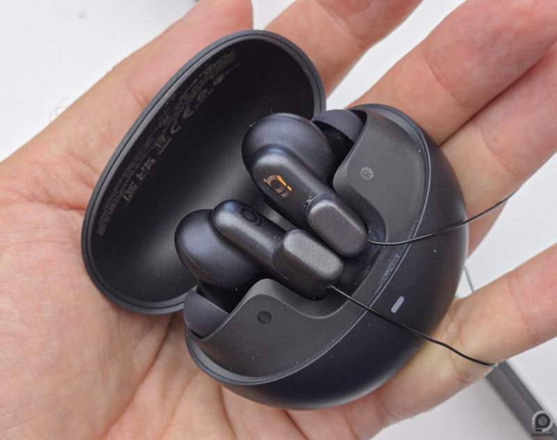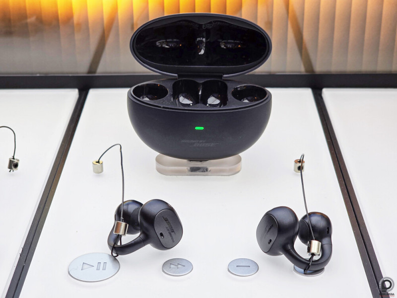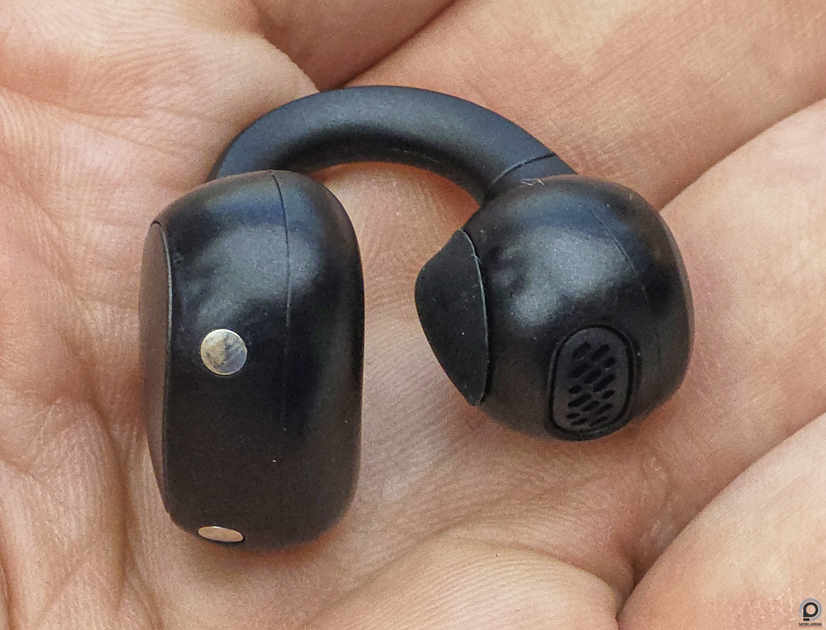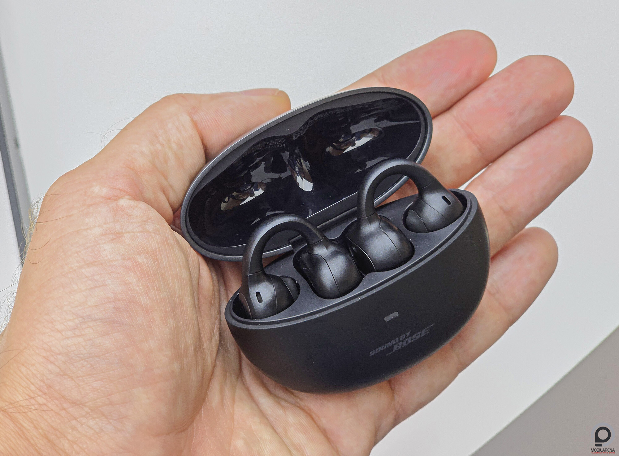 A Hi-Res Audio Wireless, LDAC és Dolby Vision logókkal felvértezett füles két oldalon, négy ponton és jó balansszal illeszkedik a fülhöz. Open Ear kialakítása miatt persze sokat nem szűrt ki a zajos sajtóesemény morajlásából, de nem is ez a profilja. Az IP66 védelemmel nem lesz gond a futással szakadó esőben, négy mikrofonnal és AI algoritmussal pedig elvileg a hanghívás minősége is rendben kell legyen.