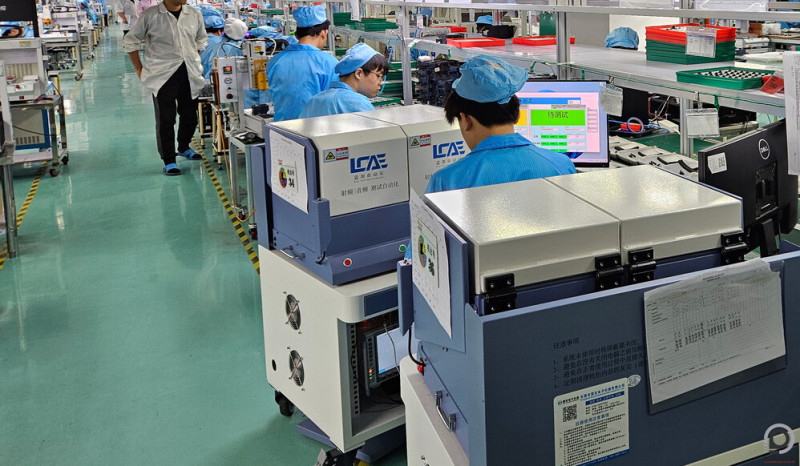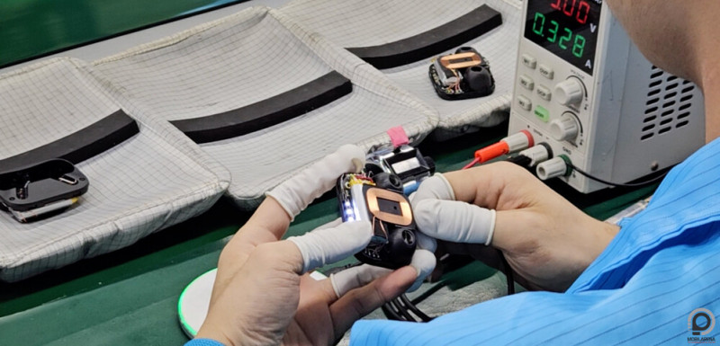 Ha minden összeállt, akkor az AncSonic leányvállalata, a SiliSound végzi a gyártást. Ez már nem Sencsenben, hanem Dongguanban történik, ami autóval kábé egy órányira van. Dongguanban nagyon sok gyár van, a SiliSound üzeme is egy ilyen épület kilencedik emeletén található. Ellentétben egy okostelefonos gyártóval az Earfun és a SiliSound is engedte, hogy fotókat és videókat készítsek belül. A gyártósor nem olyan hosszú, mint egy telefon esetén, viszont jóval több az emberi munkaerő. Az összeszerelés nagy részét emberek végzik, mindenkinek megvan a saját, körülbelül 15 másodperces folyamata, miközben kis tálcákban haladnak a félig kész termékek végig egy futószalagon. Itt tényleg lépésről-lépésre végig lehet követni, hogy miből áll össze egy headset, külön ember teszi bele az akkut, a mikrofont, a burkolatot, a forrasztást úgy, hogy szinte minden folyamategység után van egy részleg, ami ellenőrzi is a munkát. Az Earfun azt mondja, hogy emiatt persze drágább a gyártási költség, de nagyon ritka, hogy hibás termék kerül a dobozba. Amikor már összeáll a headset, akkor további teszteket végeznek, végigpróbálják az összes gombot és érintőfelületet, ellenőrzik a két füles közötti kapcsolatot, a töltést és persze a külső megjelenést is, aztán egy teljes szakasznyi ember foglalkozik azzal, hogy makulátlanul tisztára törölje a végeredményt, ami ezután mehet a dobozba. De még ezek után is van egy illető, aki minden egyes headsetet külön ellenőriz (illetve konkrétan három ilyen munkavállaló csinálja), ők már az Earfun saját alkalmazottai.