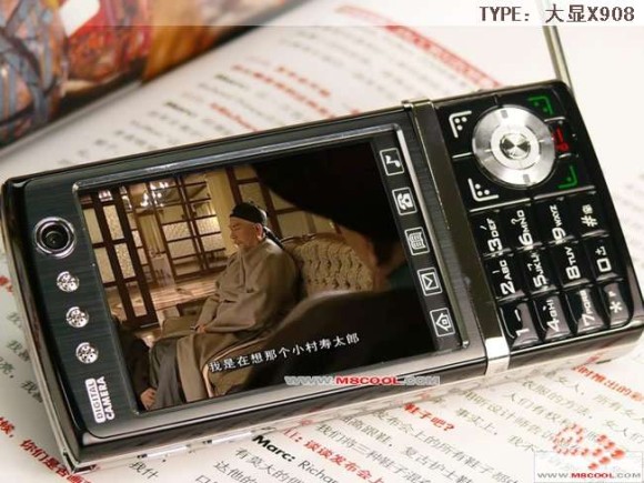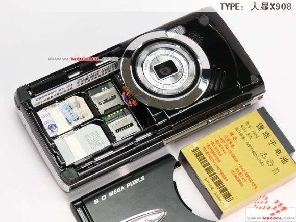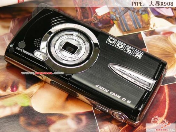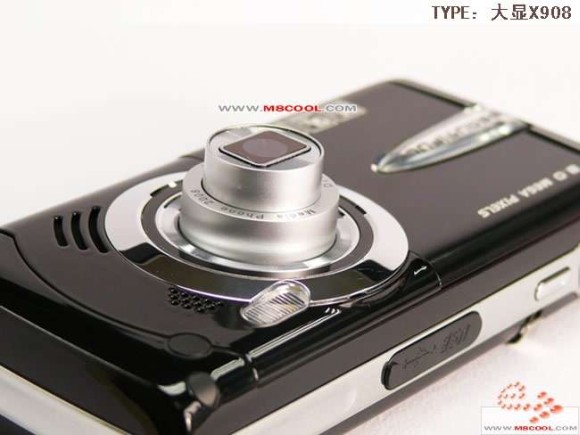 We again bring you such a wonderful handset, called X908, or at least that's what we can tell of the pictures. The phone with a 3", QVGA display has an 8 megapixel camera, two SIM and a microSD slot, dual Bluetooth (can work with two Bluetooth accessories at the same time) and mobile TV, which is astonishing not only at first glance but at the second too. It's interesting that no matter the 8 megapixel label the highest resolution for images is 1600 x 1200 pixels, while videos can be recorded at 320 x 240 pixels. There is an optical zoom (3X), the internal memory is half a gigabyte large, where we can store lots of games, as the phone can run NES games too. Here are the pictures: