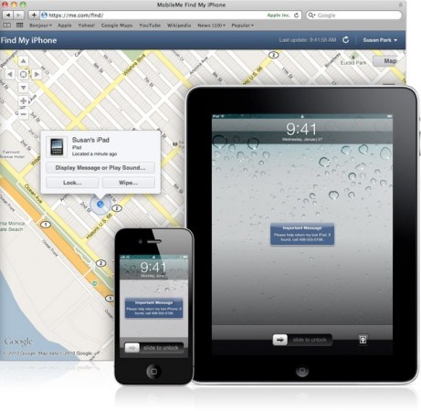 Az iOS 4.2.1 bemutatásával a korábban kizárólag MobileMe előfizetéssel rendelkezők számára elérhető „Find My iPhone” szolgáltatás elérése iPad, iPod Touch és iPhone modellekkel rendelkezők számára egyaránt teljesen ingyenessé vált. A böngészőből elérhető online felület segítségével nem csak a saját készülék pillanatnyi tartózkodási helyének meghatározására van lehetőség, hanem a kijelző jelszavas lezárására, egyéni kijelzőfelirat megjelenítésére, valamint hangjelzések kiadására is lehetőség nyílik, sőt akár a teljes belső tárhely is törölhető távolról. Ez utóbbi elsősorban üzleti titkok vagy érzékeny személyes adatok esetén lehet igazán hasznos.