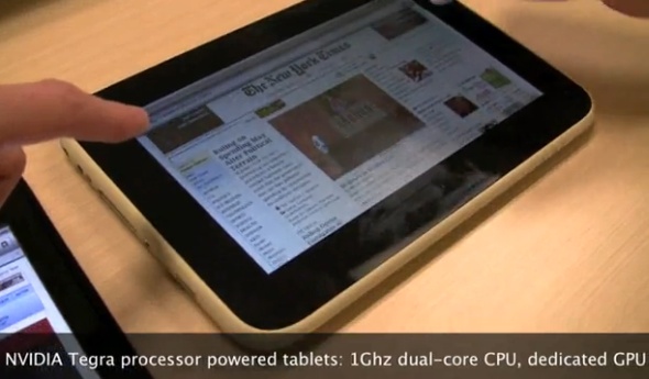 Egyre nagyobb a mozgolódás az nVidia Tegra 2 platformja körül, mely két, egyenként maximum 1 GHz-en futó ARM Cortex-A9 magot és egy dedikált grafikus gyorsítót is tartalmaz, mely utóbbi fejlett 3D grafikát és teljes HD támogatás is kínál alacsony fogyasztás mellett. Az alábbi videóban két internettábla prototípus is látható, melyek közül a fekete 7, a FoxConn által gyártott másik pedig 10 hüvelykes rezisztív érintőkijelzőt kapott. A Tegra 2 platform számára nem jelent gondot a hatalmas felbontású képek és 1080p felbontású HD videóanyagok megjelenítése sem, emellett a weboldalakba ágyazott Flash tartalmak is minden gond nélkül megjelennek, bár a Flash videók lejátszása egyelőre nem megoldott, ám a piaci bevezetés idejére a teljes Adobe Flash 10.1 támogatásra is számítani lehet. Az IntoMobile értesülései szerint az nVidia Tegra 2 minden gond nélkül képes 3D játékok futtatására is, így az Unreal is gördülékenyen futott rajta, ezzel is bizonyítva a GPU erejét.