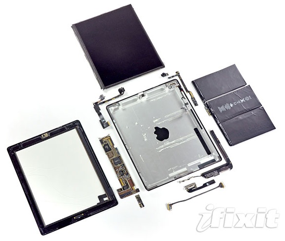 A pénteki piaci premiert követően az iFixit szinte azonnal górcső alá vette az Apple új internettábláját, mely jelenleg a piac legkarcsúbb és leghosszabb üzemidővel rendelkező készüléke. Az ultravékony kialakítás elérése érdekében az Apple számos komoly kompromisszumra kényszerült, így az előlapi edzett üveglap 0,85-ról 0,62 milliméterre fogyott, mely ráadásul kizárólag hőpisztoly segítségével választható el az alumínium hátlaptól, vagyis a házi szervizelés szinte esélytelen. A jövevény belsejének legnagyobb részét a 3,2-ről 2,4 milliméteresre karcsúsított, 9,7 hüvelykes kapacitív multitouch IPS érintőkijelző és a 25 Wh kapacitású akkumulátor teszi ki, mely utóbbi az első tesztek alapján 10,5 órányi videólejátszást biztosít 75 százalékos kijelző fényerő és aktív WLAN modul mellett.