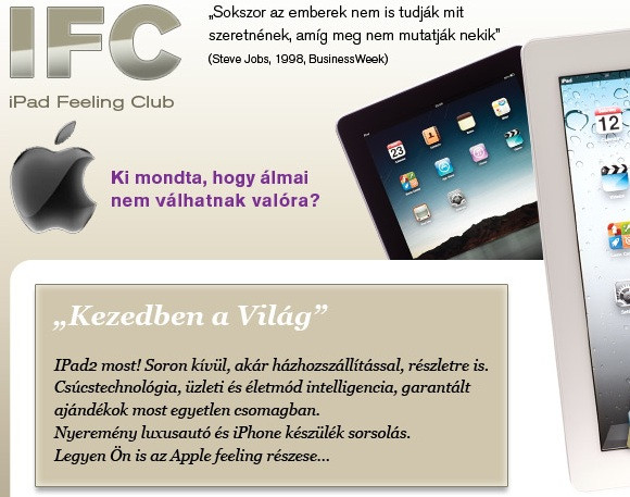 (x) A Mobilaréna mindig utánajár az izgalmas újdonságoknak, megnéztük vajon mit kínál a napokban elindult iPad Feeling Club…Tényleg azonnal tudják a hiánycikk iPad 2-t kínálni? Valóban olyan exkluzív az IFC klubtagság? Mit takar az üzleti- és életmód intelligencia? Hogyan lehet a luxusautó nyereményjátékon részt venni…