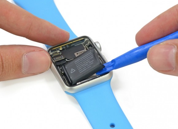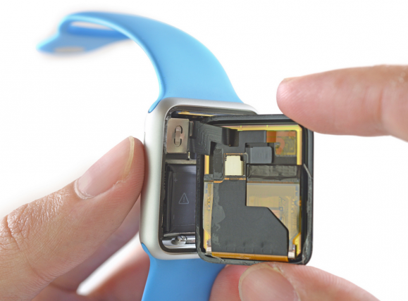 Az óra szerelhetősége nagyjából a várakozásoknak megfelelő és leginkább az iPod nano 6th generációs modelljére hasonlít. Főleg a kijelző elhelyezése és csatlakozása miatt, hiszen ezek teljesen ugyanúgy lettek megoldva, mint a 2010. szeptember 1-jén debütált zenelejátszónál. Ez az első ránézésre is szembetűnő tulajdonság - tehát, hogy nincs olyan pentalobe lezáró csavar, mint az iPhone-oknál - azt jelenti, hogy a kijelző rögzítése az iPodoknál már régóta bevett kijelző ragasztásos technikával történt.