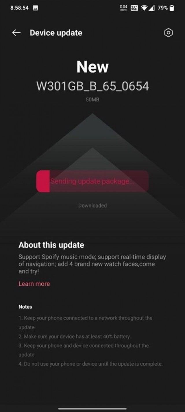 A OnePlus, egyébként nagyon helyesen, első körben az ismert bugok javításával és az általános optimalizálással volt elfoglalva, beleértve a GPS és a szenzorok újrakalibrálását és az értesítéskezelés fejlesztését. Azóta már több nagyobb frissítés is érkezett az órára, mind hasznos, új funkciókkal. A kiadott 50 megabájtos B.65-ös szoftververzió sem kivétel.
