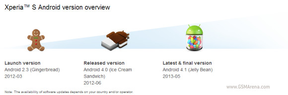 Azok a készülékek, amelyek az Ice Cream Sandwich-en ragadtak: Xperia U, Xperia tipo és tipo dual, Xperia sola, Xperia miro és Xperia arc S. A lista szerint az Android 4.1 Jelly Bean az utolsó hivatalos firmware az Xperia SL, Xperia ion, Xperia acro S, Xperia J, Xperia go, Xperia S és Xperia P.