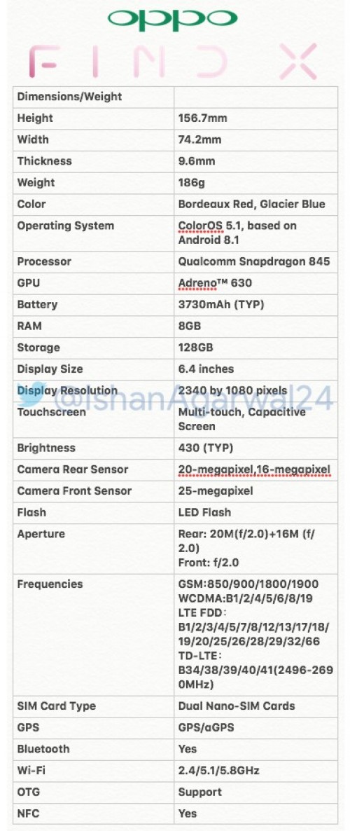 A Twitter-folyamban több érdemi információ is elhangzik, például a forrás úgy tudja, a Find X az Oppo R15 és Oppo R15 Pro társaságában kapható lesz Európában, vagy legalábbis Hollandiában. Mondjuk, ennek technikai akadálya nincs, láthatóan a Find X is támogatja a B20-as LTE sávot. Kissé aggasztó viszont, hogy a jól informált úr ugyan nem mondja biztosra, de lehetséges, hogy mégis lesz szenzorsziget.