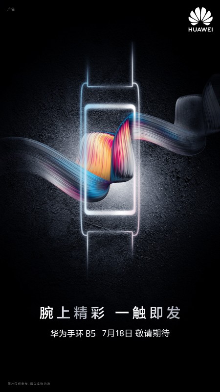 Az újdonság láthatóan az elődjénél nagyobb és színes OLED kijelzővel várható, ezt a Huawei által közzétett előzetes is megerősíti. Legalábbis a színes nyalábok elég árulkodóak. A Huawei TalkBand B5 július 18-án kerül bemutatásra, egyébként a Nova 3-mal egyetemben, kereskedelmi forgalomba pedig két nappal később, július 20-án kerül, Evan Blass tájékoztatása alapján legalább két színben.