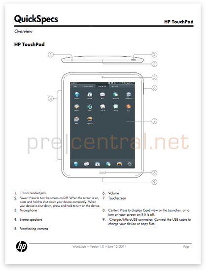 A PreCentral értesülései szerint az Egyesült Államokban június 12-én debütálhat a HP első webOS alapú internettáblája, melyet számos kiszivárgott marketinganyag is alátámasztani látszik. A „TouchPad 1.0” az előzetes tesztek alapján rendkívül ígéretesnek tűnik, noha a konkurens megoldásoknál vastagabb és nehezebb kialakítás, illetve az alkalmazások alacsony száma sokak számára túl sok kompromisszumot jelenthet. A HP internettábla igazi aduásza ugyanakkor a webes kezelőfelülete és az előre telepített alkalmazások szinergiája, mely révén a szolgáltatások közötti átjárás teljesen intuitív módon biztosított.