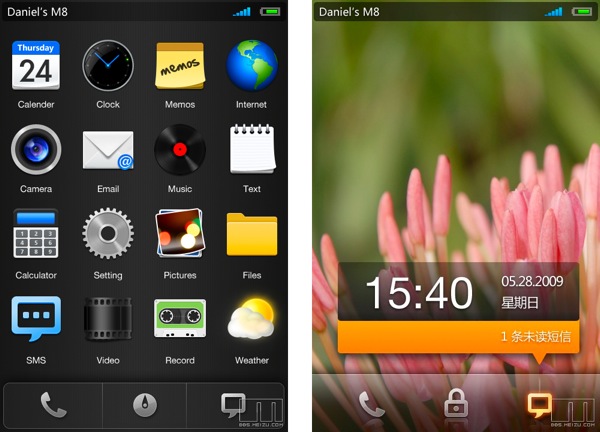 Számos pletykát lehetett már hallani arról, hogy az eredetileg Apple iPhone másolatnak szánt, ám a két éves fejlesztési ciklus alatt sokat finomodott, Windows CE alapokon nyugvó Meizu M8 augusztusban egy nagyszabású szoftverfrissítést kap, mely várhatóan több új funkcióval és számos téren megváltoztatott kezelőfelületi elemekkel érkezik. Az alant látható képek tanúsága szerint a gyártó továbbra is szeret vonzó ötleteket kölcsönvenni a konkurenciától. A jövőre érkező, várhatóan hasonló kezelőfelülettel rendelkező Meizu M8 3G változata az első információk szerint nem a gyártó teljesen átdogozott Windows CE platformját fogja kapni, hanem a Google Android rendszerén nyugszik majd. További információk és képek aMiezu hivatalos információs oldalán találhatóak.