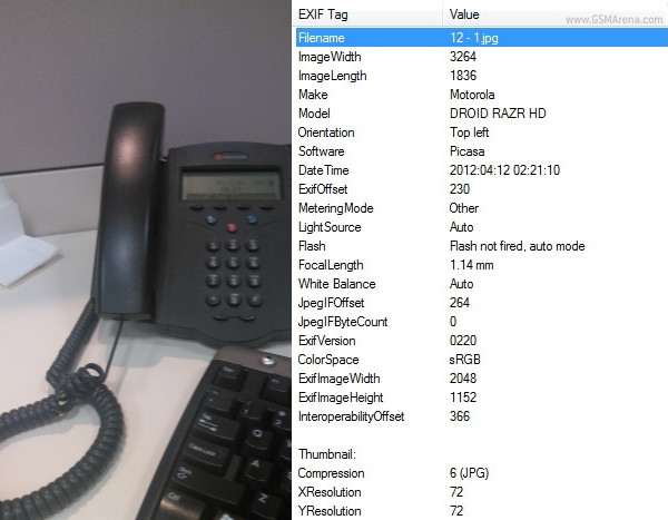 A Sony után a Motorola Mobility bemutatás előtt álló csúcsmodelljét is a Picasa képmegosztó oldal leplezte le, mely természetesen a műszaki paraméterekről nem sokat árulkodik, de azért némi logikával viszonylag sok részletre lehet következtetni. Először is az EXIF információ szerint a jövevény a DROID RAZR HD nevet viseli, melyből az utolsó két betű minden bizonnyal 720x1280 képpontos megjelenítő használatára utal, mely valószínűleg a Kínában piacra dobott 4,5 hüvelykes RAZR variánshoz hasonló lehet. Másrészt a 16:9-es képarányú fotó mérete 6 megapixel körüli, mely 8 megapixeles kamera használatát vetíti előre. Ez persze egyelőre mind csak spekuláció, de valószínűleg nem állhat messze az igazságtól.