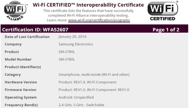 Az Apple egyetlen készülék különböző évjáratú kiadásaiból álló termékpalettájával ellentétben a Samsung szinte megszámlálhatatlan modellel van jelen a piacon, melyek köre a február 24-én kezdődő Mobile World Congress során is bővülni fog. Ezek közül az egyik minden valószínűség szerint a Galaxy Note 3 Neo lesz, ám emellett néhány olcsóbb és kompaktabb megoldásra is számítani lehet. Szintén Barcelonában debütálhat az SM-S780L sorszámú készülék is, melyről egyelőre csupán annyit tudni, hogy 720 x 1280 képpontos kijelzővel rendelkezik és ez is csupán a WiFi a/b/g/n/ac tanúsítvány megszerzésével került napvilágra. A QHD és Full HD kijelzős csúcsmodellek térnyerésével az alap 720p HD felbontás egyre inkább a középmezőny felé veszi az útját, mely az átlagfelhasználók számára több mint elegendő.