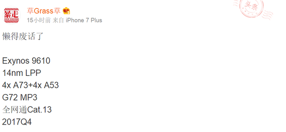 Weibo posztokban szivárgott ki két, elvileg folyamatban lévő Exynos lapka specifikációja. Az Exynos 9610 a sorszámmal ellentétben nem biztos, hogy csúcsszériás megoldás lesz, a paraméterek alapján sokkal inkább a felső-középkategóriában indul. Az Exynos 9 Octa 8895 egyedi dizájn alapján tervezett Mongoos M2-es magjai helyett az ARM Cortex-A73 és Cortex-A53 magjait alkalmazza, mindkét típusból négyet.