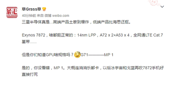 A másik szett elvileg Exynos 7872 néven érkezik, visszafogottabb teljesítménnyel, viszont teljes hálózati és szolgáltatói kompatibilitással Kínában. A teljesítménycentrikus halmazba mindössze két Cortex-A72-es mag kerül, míg az energiahatékony klaszter négy darab, Cortex-A53-as maggal dolgozik, tehát egy hatmagos konstrukcióról van szó. A gyártástechnológia viszont megegyezik, szintén 14 nanométeres node-ot alkalmaznak. A grafikáért az egymagos, előző generációs Mali-G71 felel, és az Exynos 7 Octa 7880-nal megegyező LTE modem kerül bele, ami Cat.7-es adatkapcsolati sebességet tesz lehetővé, az új szett így frissebb alternatívaként szolgálhat.