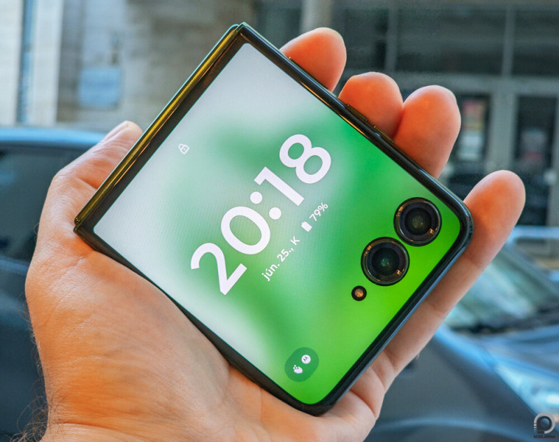 Ezúttal is megvan az IPx8 védelem, ami a porállóságot nem, ám a vízálló kivitelt kipipálja (30 perc, 1,5 méter mélység), csukva pedig apróbb tenyérrel sem gond a kezelés. Igaz: szétnyitva, 22:9 arányú panellel annyira hosszúkás a Razr 50 Ultra, hogy férfikézzel is gyakran kell fogást váltani a felső tartalmak elérésére. Persze újfent jól jön a megfelelő tapadás, hogy ne legyen baleset a vége.
